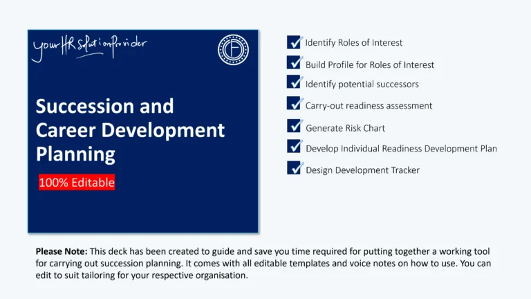 This toolkit is designed to guide you in carrying out an effective succession planning within your organisation. It is a rich toolkit that comes with editable templates, tools and framework. In this toolkit, ...